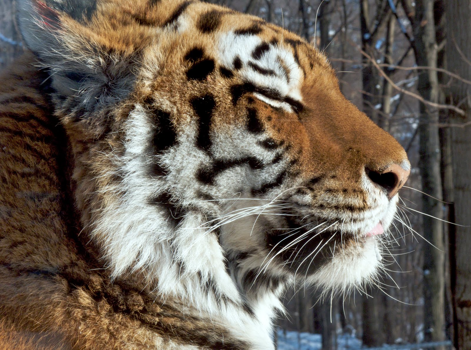 Napping in the sun in January, this huge cat ignored me until he was ready to leave this spot, when he suddenly turned and swiped at the glass before loping off to visit his kin. I don't tend to believe much in interspecies communication, certainly not between humans and wild animals, and I am not prepared to say that it was all in play. I respect these cats a lot and am glad for every shred of wild instinct they retain. These Amurs belong to a critically endangered species.