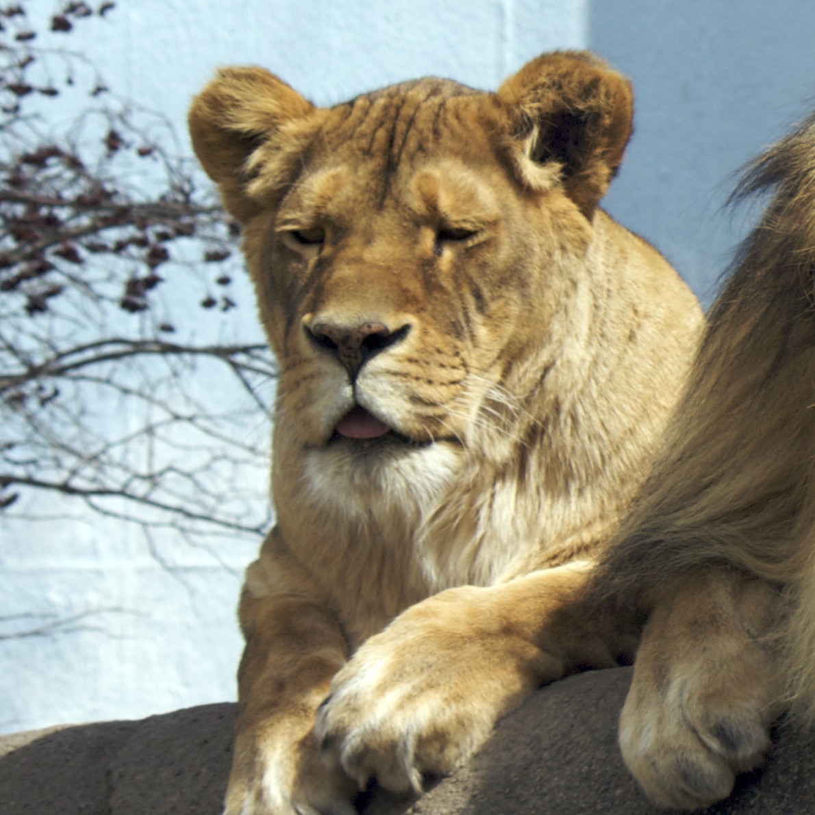 These pictures were all taken within a minute. In the first the female is at ease. In the second she has spotted a 10 year old child behind the viewing window. In the third, she is ready to pounce.